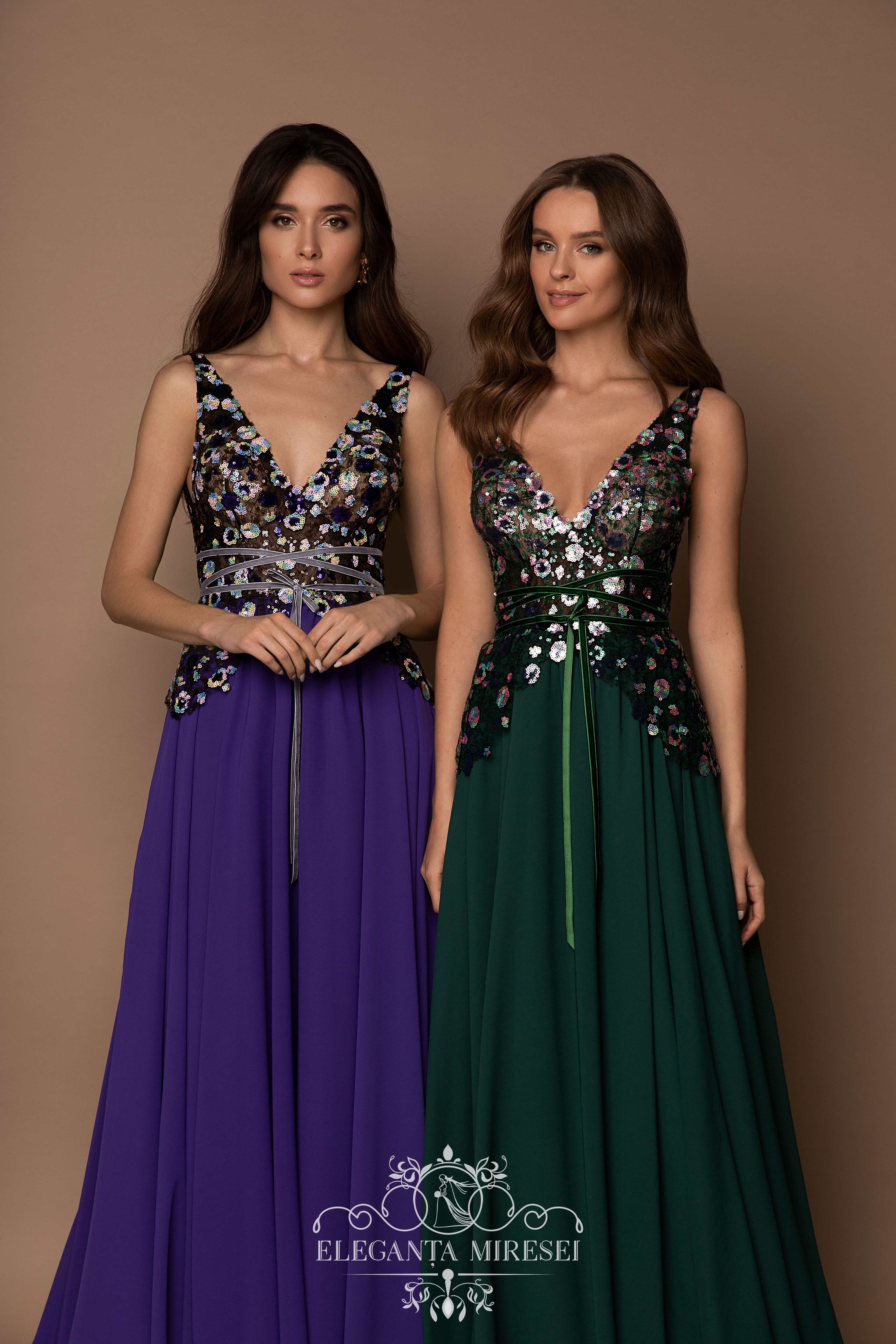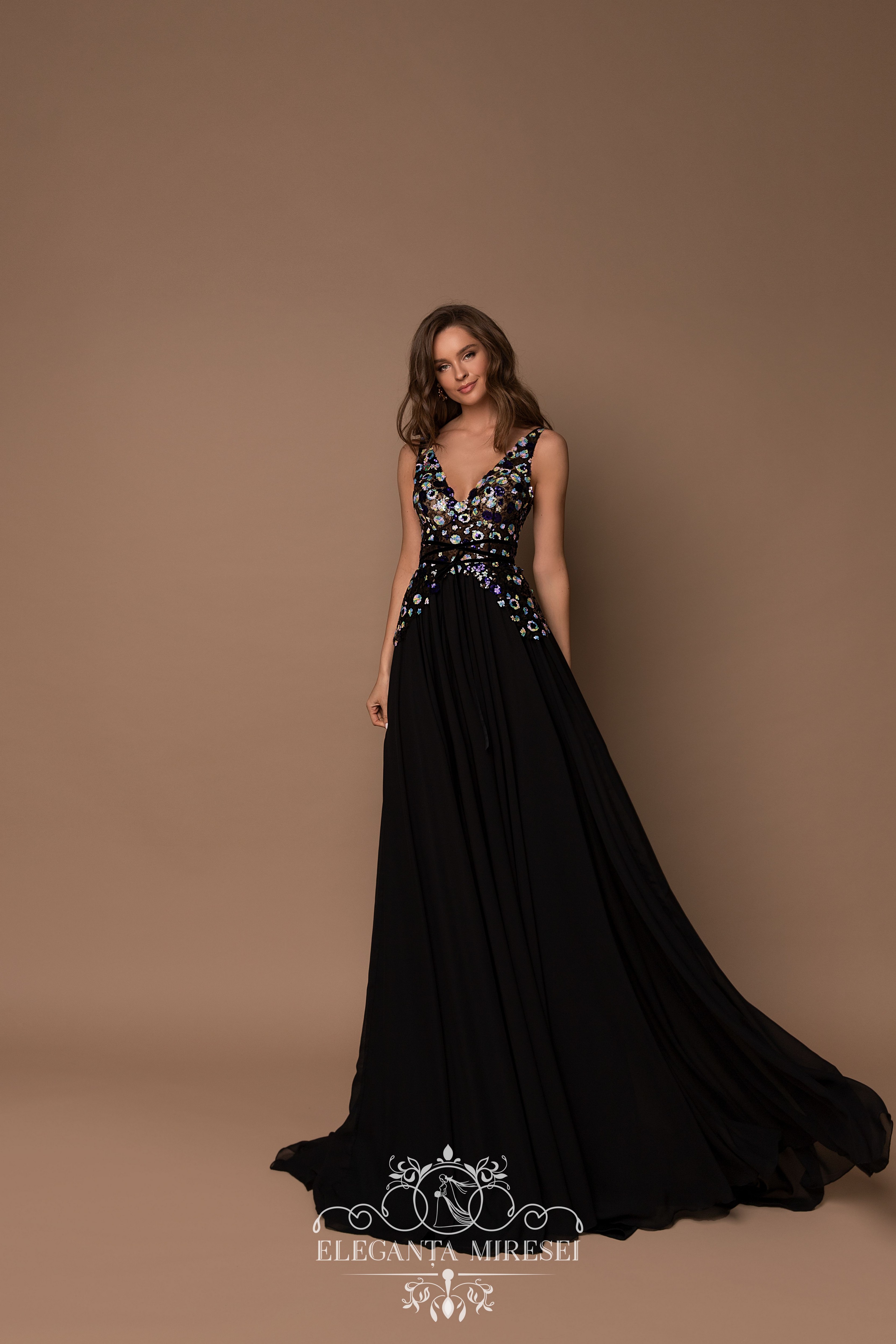 O rochie de seară cu un paioană strălucitoare de guipure cu o fustă ușoară. Corsetul este decorat cu crestături în formă de „V” în față și în spate. Pe corset, elementele de decor sunt legături dintr-o panglică de catifea.